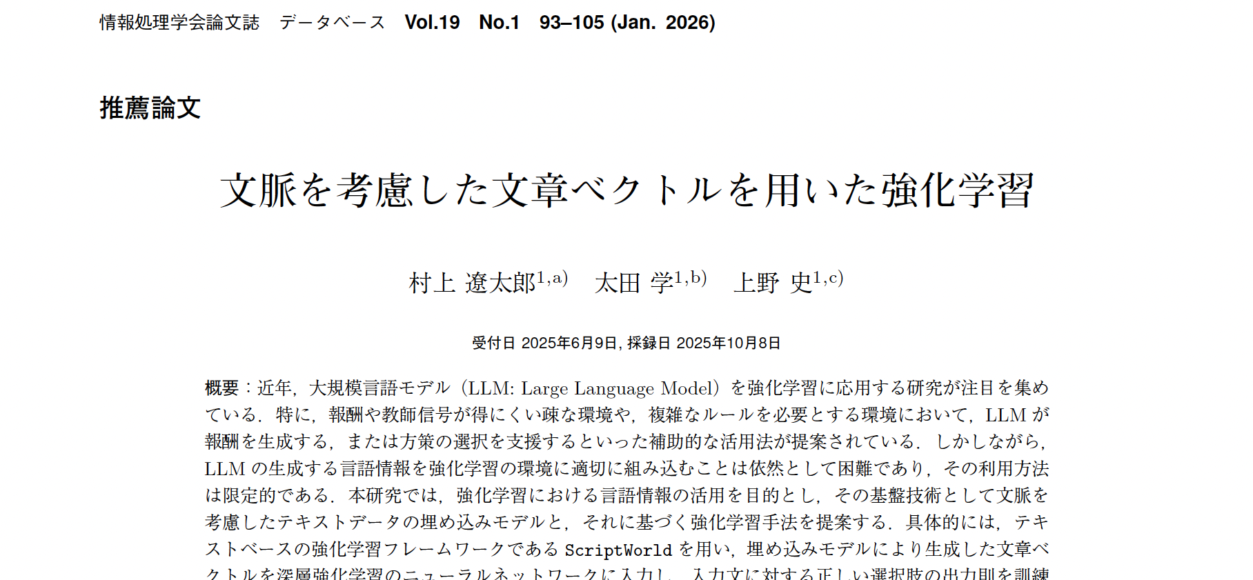 松本さんと村上さんの研究成果が情報処理学会論文誌に採録されました